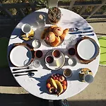 Das La Maison Fleur De Frangipanier serviert zum Frühstück Pancakes und frisches Gebäck.